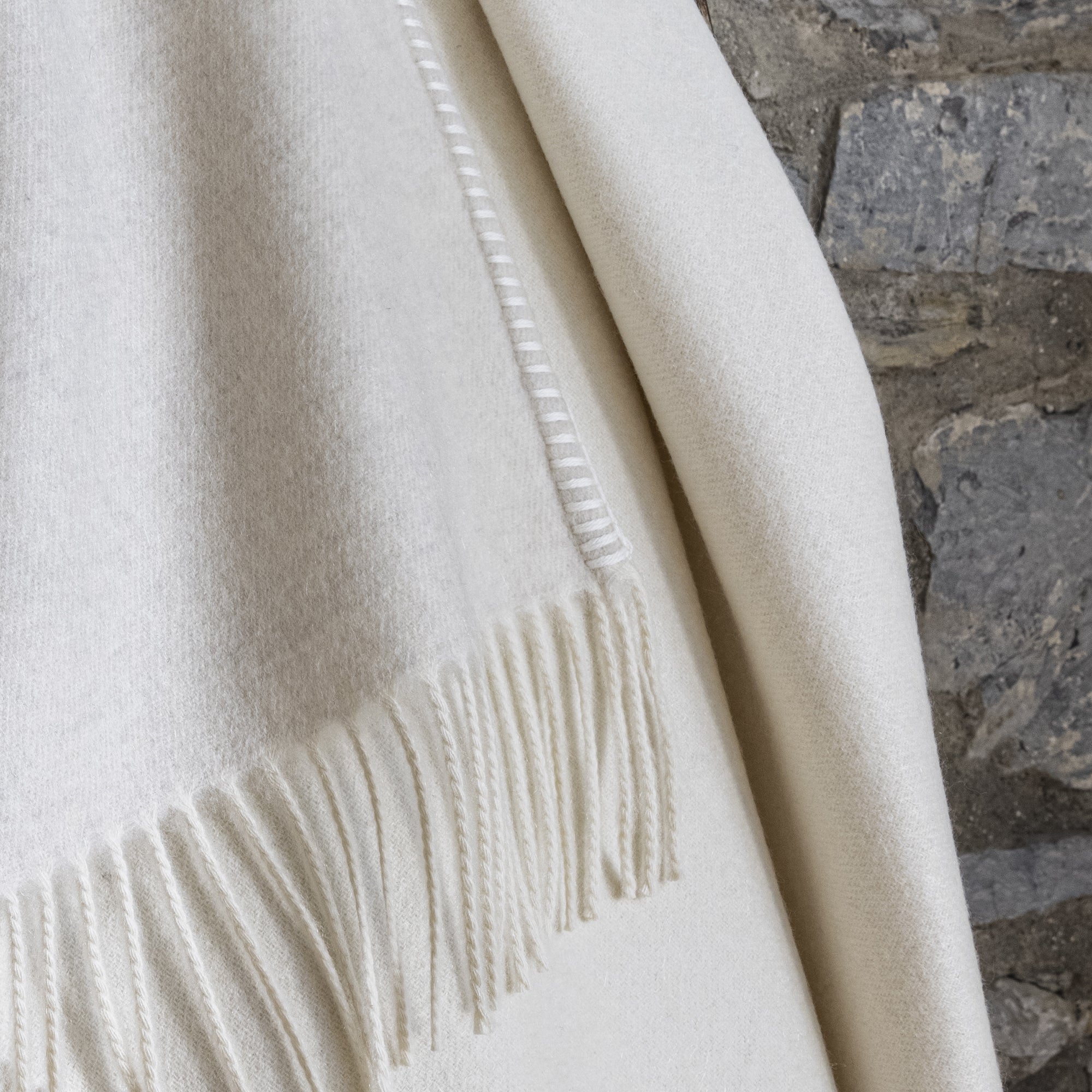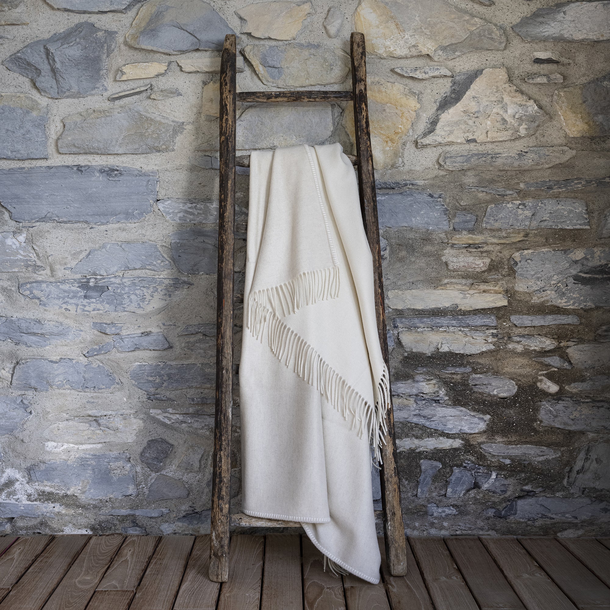 This made in Italy fine 100% cashmere throw combines two color tones for a double-sided and versatile use. Composed of an extraordinarily soft and light yarn, enriched with fringes and handcrafted colored edges, it gives a luxurious touch to your sofa or bed.