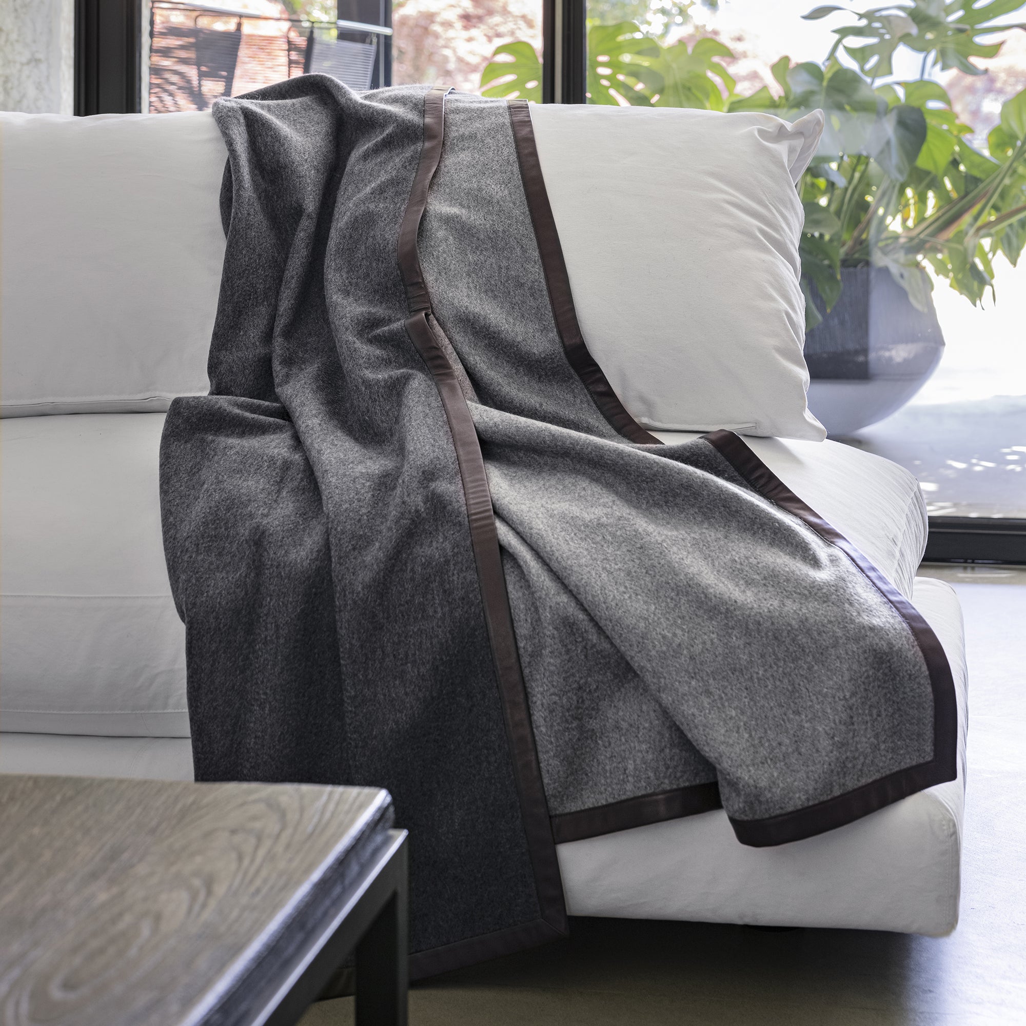 SALON: CASHMERE REVERSIBLE THROW WITH NAPPA EDGING