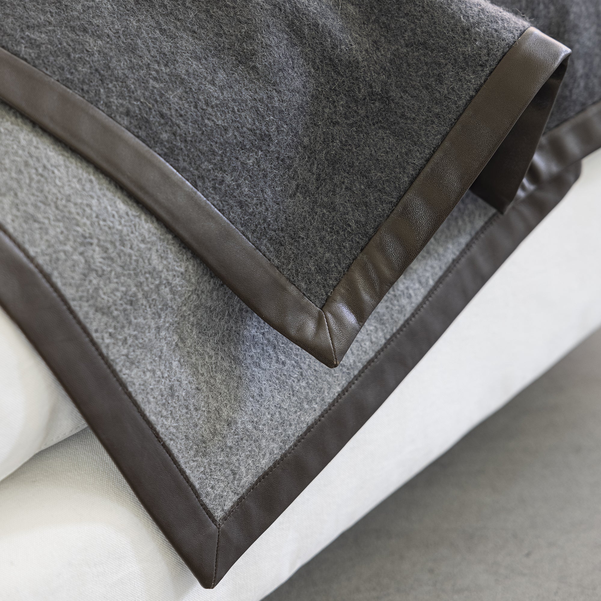 100% cashmere throw with nappa edging. Elegant and versatile, it adapts to any style of furniture. Very soft, comfortable to the touch, breathable and with a delicate texture, it is one of the most iconic styles of the Alonpi collection.
