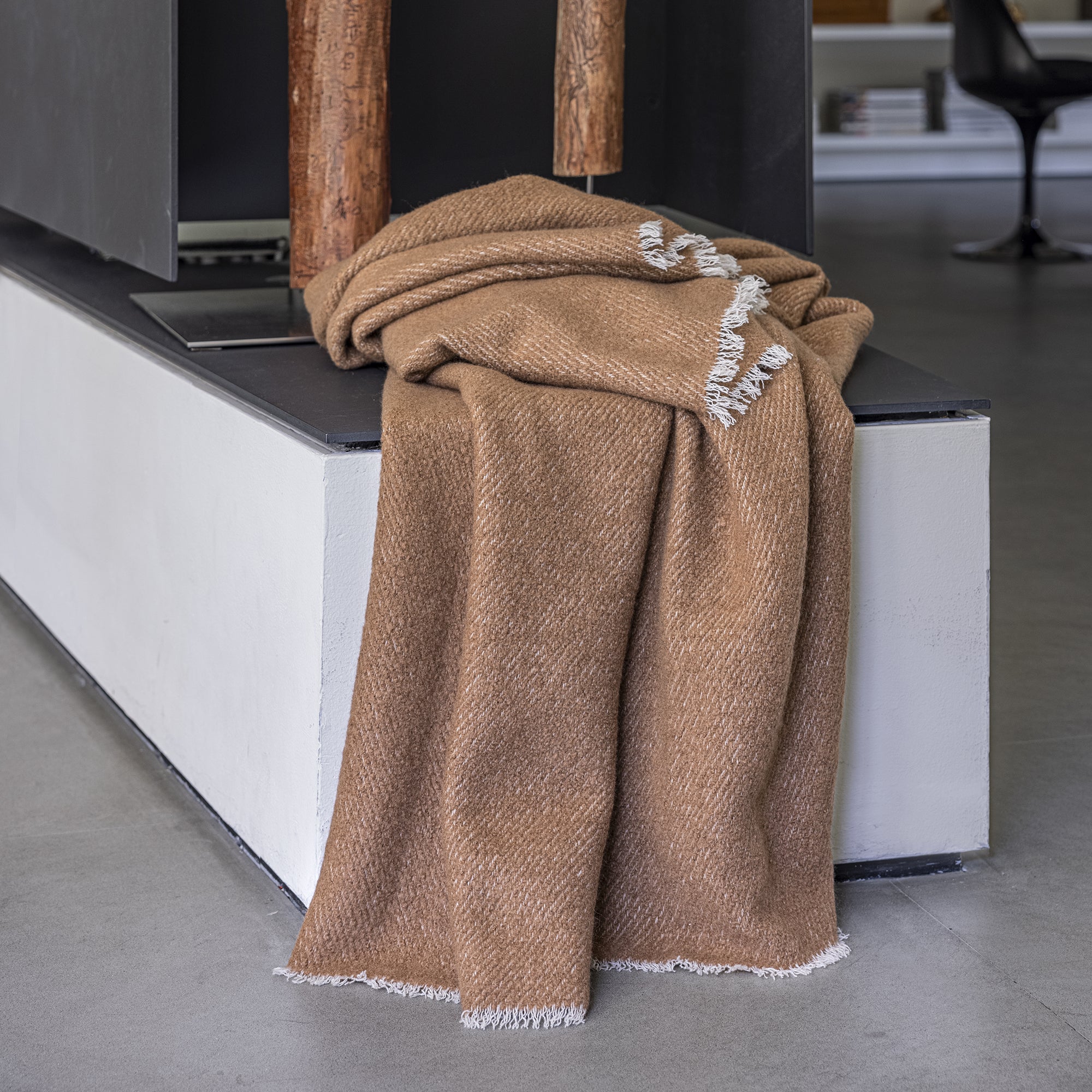 The perfect balance between softness and warmth, this elegant Alonpi throw is made of a selected blend of 88% cashmere and 12% silk. Composed of an extraordinarily soft and light yarn, it guarantees a unique, enveloping effect by adding a luxurious touch to your sofa or bed, ensuring a comfortable and elegant layer of warmth.